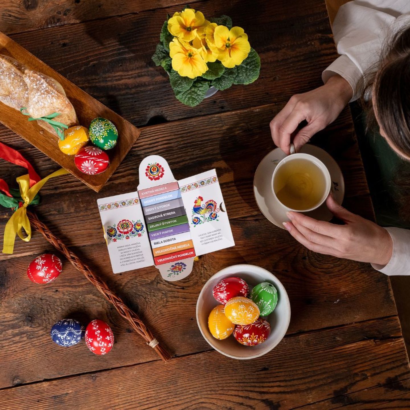 Jedinečná kolekcia 9x2 voňavých čajov a na každý veľkonočný deň rozprávanie o obyčajoch a zvykoch našich predkov.
