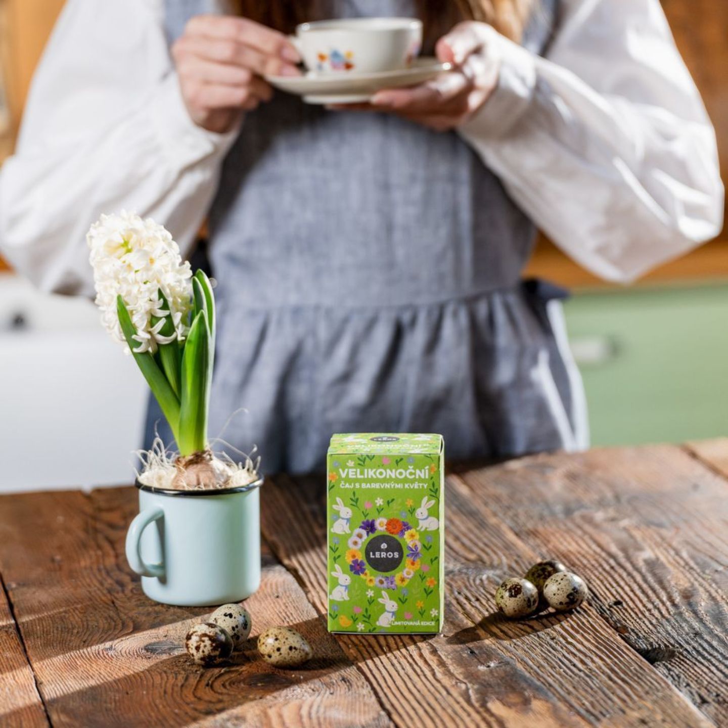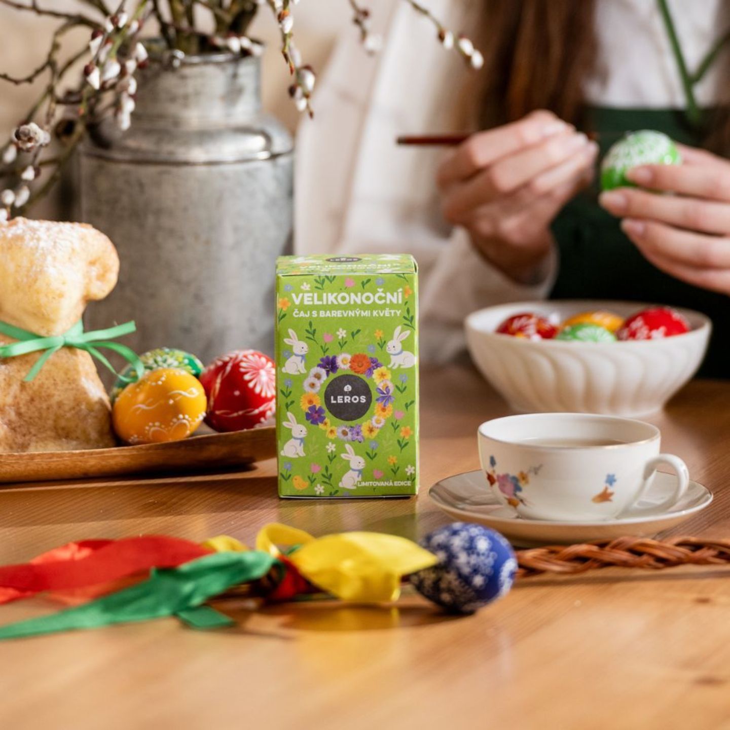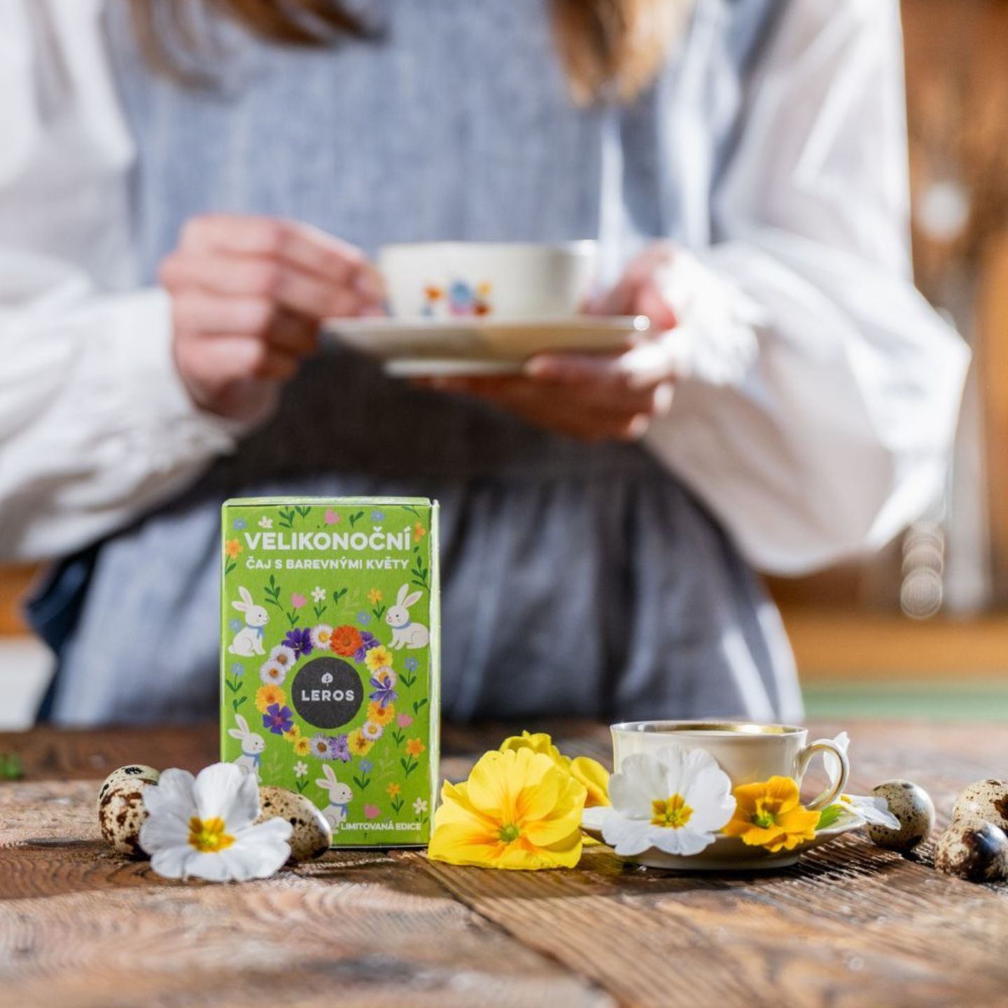 Veľkonočný čaj s farebnými kvetmi nadväzuje na starý zvyk pitia odvarov z jarných bylín. Je spätý s obdobím, keď sa príroda opäť prebúdza a ľudia vítajú nový život. Obsahuje výhonky žihľavy, ktoré sa kedysi pridávali do jarných jedál, aby očistili telo a vyhnali zimu, prvosienku – kľúč jari otvárajúci nový život, sedmokrásku symbolizujúcu zdravie a sviežosť a vŕbovú kôru, ktorej prútiky odovzdávali silu a vitalitu. V každom dúšku tohto čaju tak ožíva jar, zem aj dávne veľkonočné obyčaje.